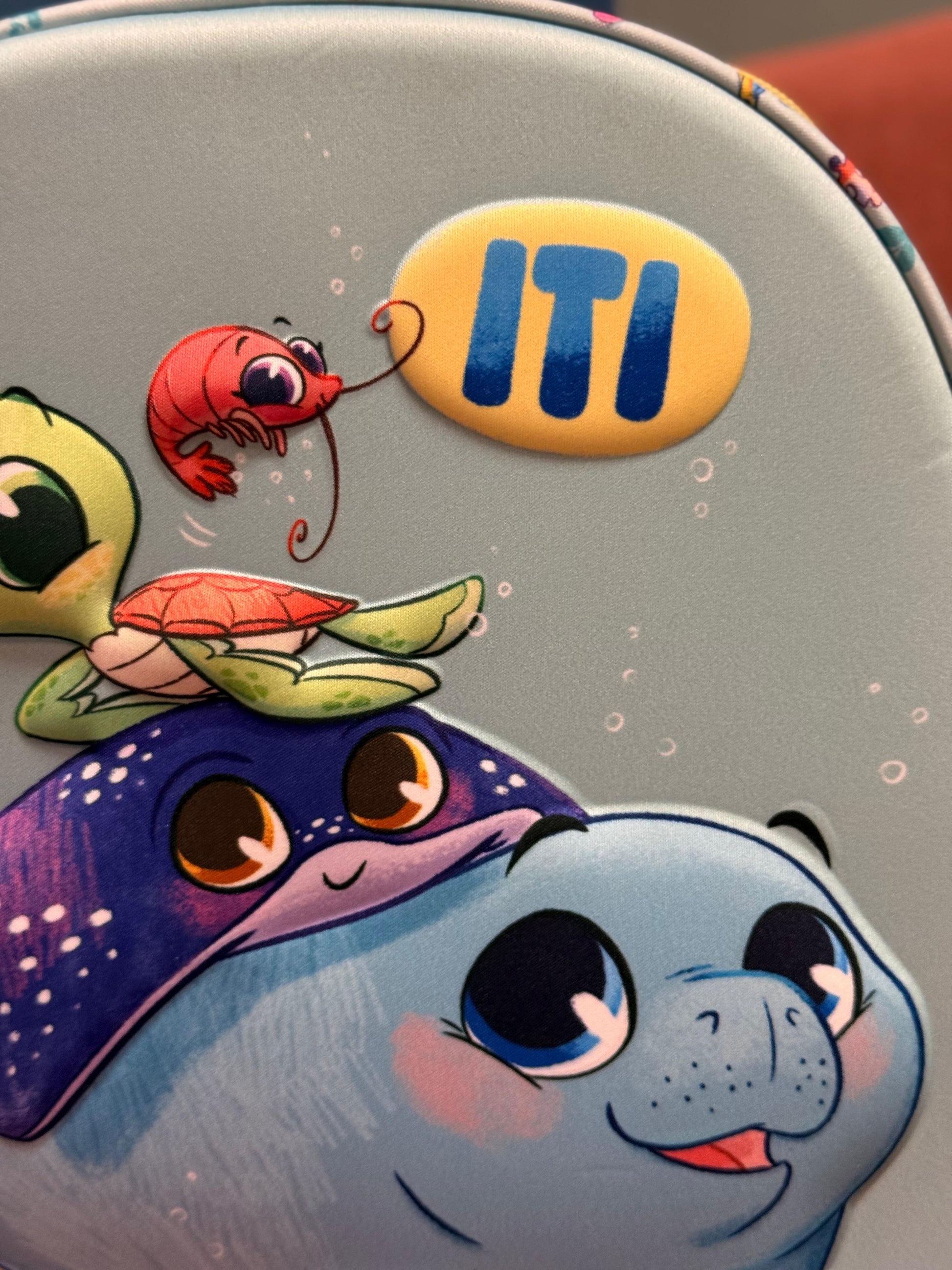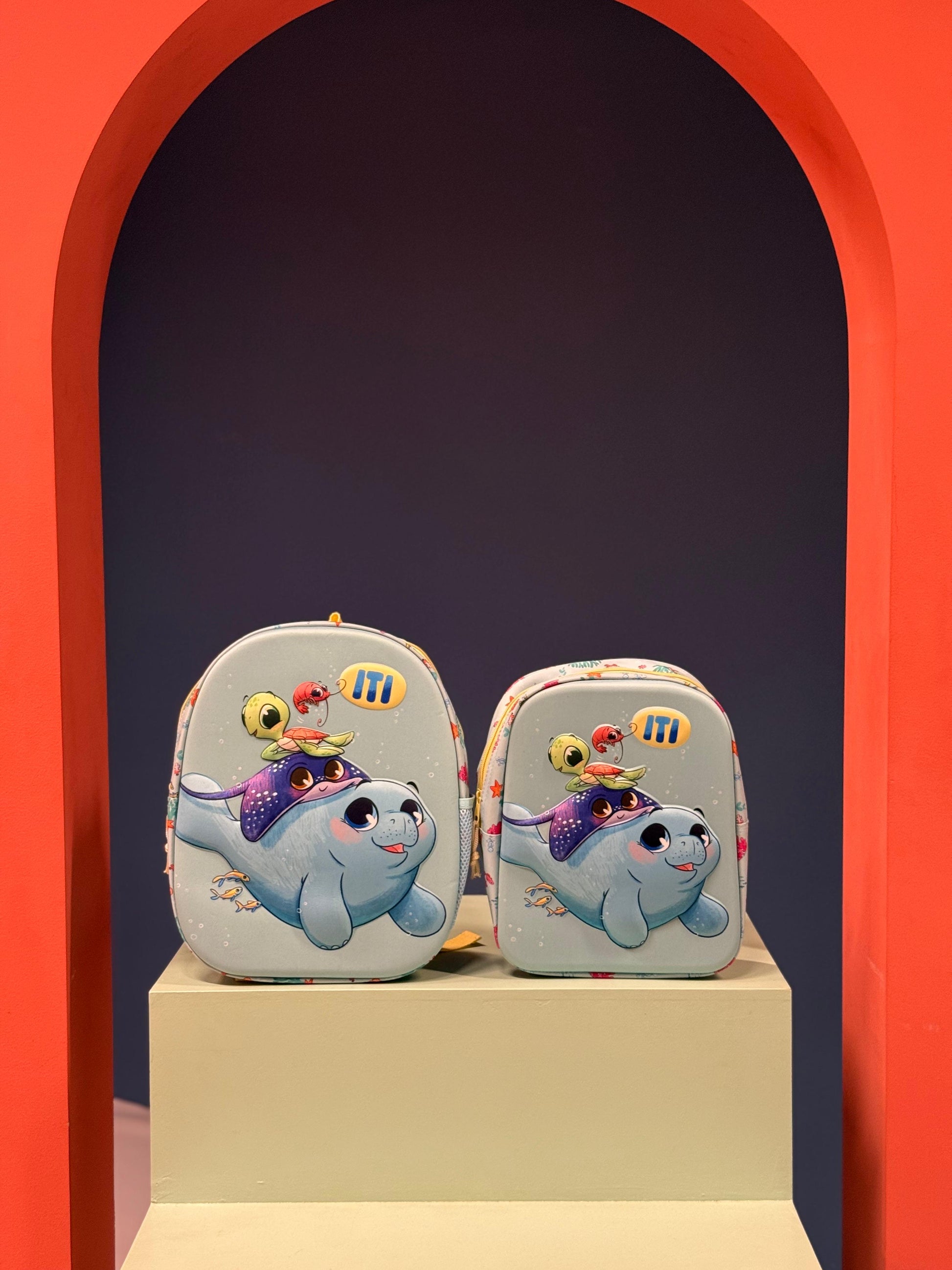 Su tamaño compacto, ligero y cómodo la convierte en la aliada perfecta para la escuela infantil, una tarde en el parque o una salida en familia. En el frontal, Iti y sus amigos aparecen en relieve con sus sonrisas llenas de ilusión, invitando a imaginar juegos, cuentos y travesías submarinas.